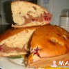 ) "Чудо" на сыворотке!1 яйцо, 300 мл сыворотки, 2,5 стакана муки, 150 г сахара, 1 пакетик ванильного сахара, малина(в оригинале изюм и 1 яблоко), 1 ч.л. корицы, 2 ч.л. разрыхлителя(1 ч.л. соды), 1 ст.л. какао.