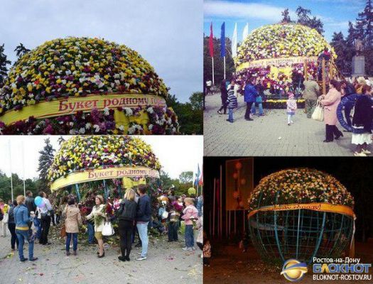 Цветочную композицию варварски растащили.Цветочная композиция в виде шара из трех тысяч астр и хризантем, собранная в честь 265-летия Ростова, «продержалась» в нетронутом виде лишь несколько часов.