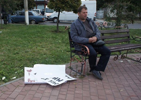 На самом деле никакого "марша мира" у стен мэрии не было, «мирный митинг» состоялся в сквере Европы, где собралось две сотни пенсионеров, студентов, подростков и зевак, итогом которого стала выдача безвестными организаторами представителям «народных масс» от 50 до 100 гривен, а свои «антивоенные» плакаты пикетчики побросали после митинга возле урн.