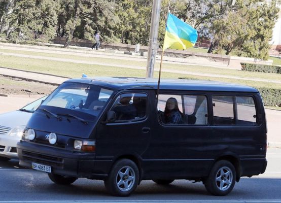 - і тут я побачила колону, пригадала новину)) Довго намагалася розвернутися біля парку Перемоги, але колона їхала майже без прогалин, нарешті мені це вдалося, я наздогнала Алю, посигналила і помахала ручкою, заїхала додому, взяла автопрапор, знову виїхала на проспект, а колона ще їхала і їхала. Іноді колона вишикувалася на обох смугах, всі привітно один одному махали і сигналили (тут треба було більше грошей просити, за щирість). Попереду мене був Лексус з величезним прапором, його тримав хлопець, який висунувся у люк, позаду мене - Таврія з наліпкою "Інвалід", поруч їхали дві дівчинки студентського віку, у віночках та з прапором, також у люку. Я проїхалася по Соляним, до спортшколи і потім до Радянської, довелося відколотися у бік Ірини;
