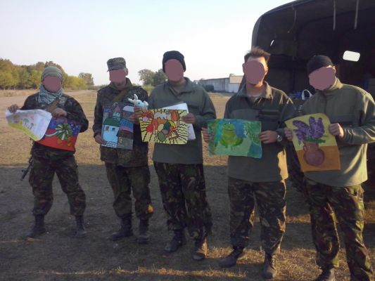 Сегодня порадовала 39-я школа г. Николаева! Детки передали много рисунков, оберег, сделанный своими руками, чтобы он оберегал наших ребят. Также 25 пар теплых носков, 19 пар тонких носков и 2 свитера. Огромное спасибо вам, юные патриоты! Особая благодарность педагогическому коллективу 39-й школы и форумчанке Наташе - mamzaaa, которая нас свела!