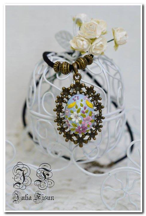 Кулон із полімерної глини зроблений в техніці філігрань, повністю вручну, без використання молдів та штампів.