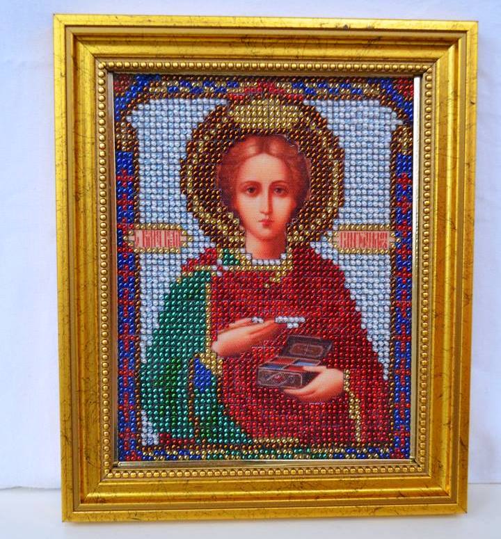 Святий Пантелеймон - ікона, вишита бісером.