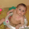 Уже после года снова проявил желание плавать, только теперь самостоятельно. Очень любит обливаться холодной водой, при этом пищит и смеется. Кроме всяких чашечек и мисочек стараюсь сейчас не давать игрушек, чтоб побольше двигался в ванной, плюхался, т.к. воду мы делаем 30-33 градусов, купаемся 15-30 мин.