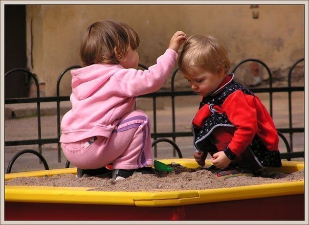 Ваш малыш мирно копается в песочнице. К нему подходит другой малыш и забирает его игрушку. Ваш кроха разгневан и пытается силой вернуть свою собственность.