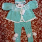Комплект для девочки 1-4 мес. на теплую осень-весну: пальто, ползунки, шапочка, пинетки, покрывало. Связала для дочери, однако надеть ни разу так и не удалось. Размер покрывала: 80х80 см. Нитки: акрил...