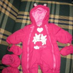 Демисезонный комбинезон, б/у, в очень хорошем состоянии, на синтепоне, подкладка вся х/б, а капюшончик - вилюр. Зайчик с забавными ушками:-) Цвет - фуксия, размер 62-68. Производитель Италия.