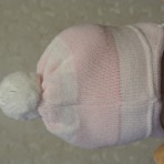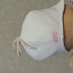 шапка бело-розовая с собачкой - двойная плотная вязка. в составе есть шерсть, но сколько именно не видно, вытерлась бирка. на ощупь около 30-40 % - холодная осень-весна, теплая зима. или зима с капюшоном. носили в 2-3 месяца