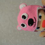 шапка розового цвета в форме Мишки - х/б, вязка крючком - теплая осень- весна, прохладное лето. Носили в возрасте 4-5 мес