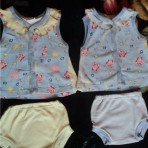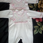 велюровые человечки с 3 мес,костюмчики беленькие с 1 мес.розовые .платья с 6 мес(носили до 1,5 года).костюмчики спортивные с 9 мес(носили до 1,8)спортивные костюмы(больше для мальчиков) носили до дву...