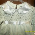 Продаю красивое нарядное белое платьице на праздник, День Рождения. Одето один раз, на годик. В идеальном состоянии. Сверху вязка, воротничок одевается отдельно, по желанию. 50 % - котон, 50 % - акрил...