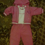 Спортивный костюм-тройка из плащевки, на х\б подкладке:ветровка, реглан, штаны. Размер 80, мы носили до 2 лет. Цвет малиновый, намного насыщеннее, чем на фото. Замерчики: Длина штанишек - 48 см, шагов...