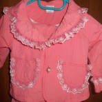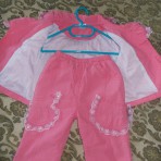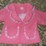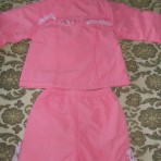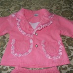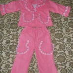 Легкий костюмчик на девочку розовато-кораллового цвета. Размер 8. Пиджак 33 см, рукав от шеи 32 см, от плеча 27 см. Штаны -от резинки 47 см, ширина в бедрах 29 см, шаг 26 см.