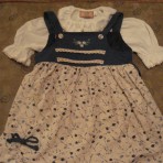 Сарафан почти не носился, быстро стал маленьким. Привезен из Германии. 63% вискоза (блузка), 80% вискоза (сарафан). Очень нарядный. Рукав фонарик 24 см, 22 см от проймы (блузка). Сарафан: от проймы...