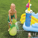 В комплект входят надувной дракон с разбрызгивателем, а также щит и копье - маленькие рыцари могут отважно защищать свою крепость от нападения дракона!