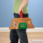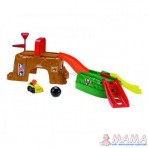 Все детали слаживаются в одну из "горок" и накрываются другой "горкой" - таким образом, игрушку можно переносить, это удобно, если ехать в гости, да и просто для хранения. См. фото.