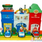 В наборе – соответствующие машинки и домики пожарной станции, медицинской службы, полицейского управления.