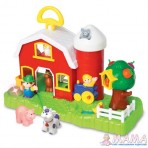 Плюс машинка,смотритель,корм,сарайчик, и 6 заборчиков.. Все животные издают характерные звуки.