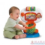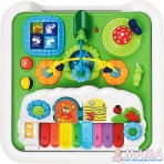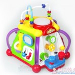 В верхней части игрового центра расположена прозрачная кнопка-барабан, мигающая при нажатии и издающая забавные звуки, и счеты-лабиринт с разноцветными бусинами.