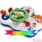 На второй стороне - панель машины, состоящая из ключа зажигания, руля с сигналом и игрушечной машинкой, управляемой рулем (сигнальная кнопка на руле и ключ зажигания при нажатии издают соответствующие звуки).