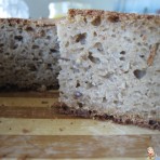 Состав: закваска (пророщенные зерна ржи, вода очищенная, мука ржаная, мед), мед, соль, мука ржаная, масло растительное сыродавленное (подсолнечное, горчичное или ореховое), вода очищенная, мука пшеничная (мука овсяная, гречневая.... отруби пшеничные, семена льна, подсолнечника, кунжут... может меняться в зависимости от вида хлеба).