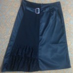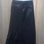 Черная юбочка, с плотного атласа – стрейча. На подкладке. Украшена вставкой из стрейча – сеточки и рядов гипюра, пояском с бряшкой. Смотриться нарядной. Молния сзади. Длина юбки – 64см. Состояние хорошее. Размер – 42-44. Цена – 20 грн.