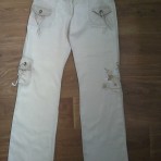 Светлые брюки - размер евро 36, пояс 40 см(низкая посадка), ПОБ 50 см, длина 105 см. 98% лен, 2 % эластан. Состояния нового - 50 грн