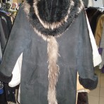 дубленка черная с отделкой из чернобурки, что придает ей изюминку. Стильная и сдержанная. Рукав, если сделать манжет - 57см, полная длина рукава 62см.Длина 93см. Состояние отличное.