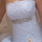 родаю свадебное платье, украшено кружевом, бисером, корсет на шнуровке, которая прикрыта тонкой лентой, небольшой шлейф, который можно убрать с помощью петельки и незаметной пуговички, платье одето один раз (оно после химчистки), размер 44-46 (регулируется с помощью корсета), шила на заказ. Стоимость 3000 грн, к платью прилагается бижутерия (серьги и колье), можно примерять
