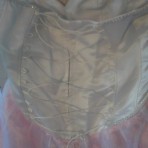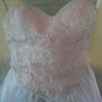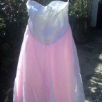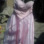 платье44 - 48 размера. в хорошем состоянии сзади на змейке и на завязках поэтому можно как на худенькую так и даже на немного плотненькую девушку.Одевала один раз!