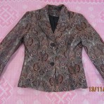 Красивый пиджачек 42-44размер на двух пуговицах. За счет расцветки выглядит богат. Длина изделия, пиджака 57см. Длина рукава от плеча 53см. внутр.сторона 49см.Все вопросы по телефону,постараюсь ответ...