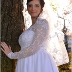 Свадебное платье. Одевалось 1 раз. Без повреждений. Шилось на заказ. Обьем груди соответствует 4 размеру.