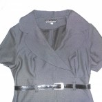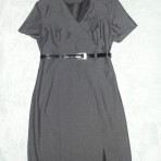 платье женское,серого цвета, змейка сбоку на талии, черный лаковый пояс, размер "М" - длина 91см, по плечам 38см.