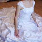 Платье абсолютно новое! Заказывала из Китая весь комплект за 200 дол, но, к сожалению не подошел размер! Платье с шлейфом, очень красивое! Корсет сзади на шнуровке! Хорошая фурнитура. Корсет с заниженной талией.