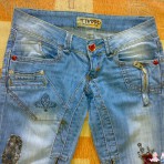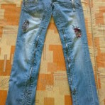 Джинсы с заниженной талией. Одеты несколько раз, т.к. оказались мне малы. Размер 26, длина по внешнему шву - 97 см. Состояние новых.