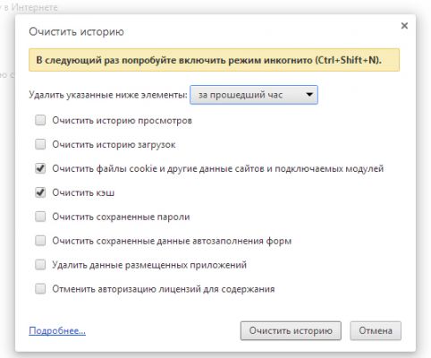 (ставим галочки как на картинке и нажимаем Очистить Историю!)