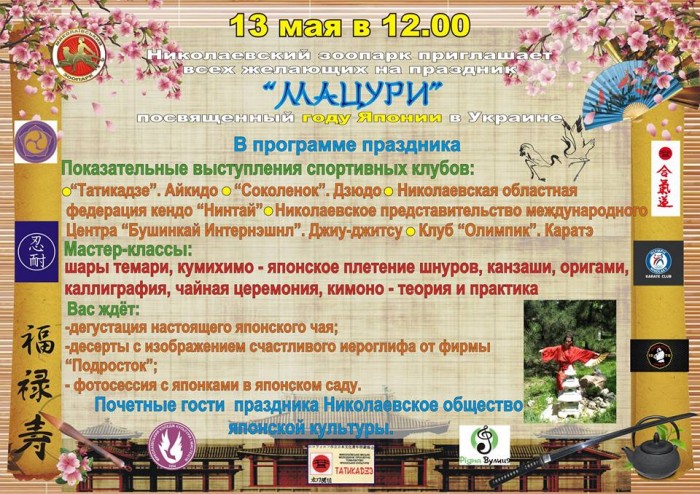 13 мая в 12.00 в Николаевском зоопарке состоялся праздник «Мацури», посвященныйГ Японии в Украине.