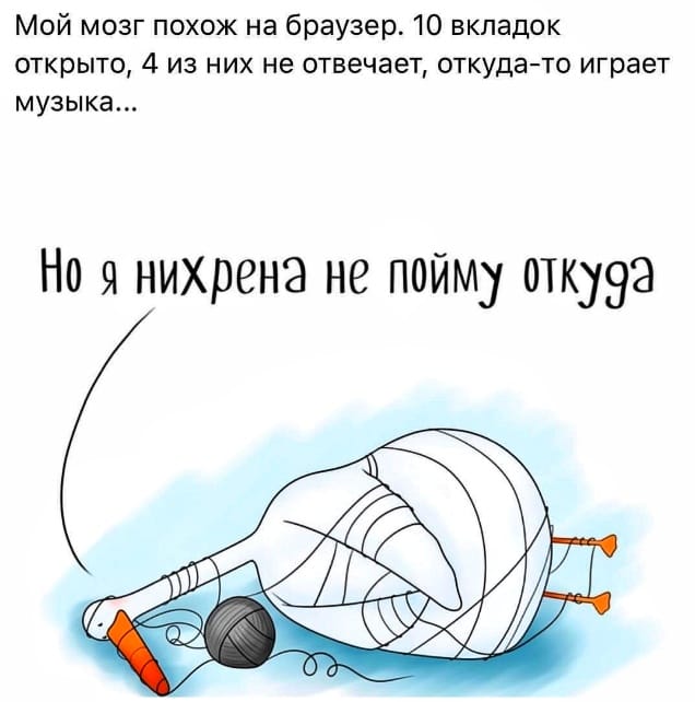 Сегодня встретила то, что замечательно описывает то, что происходит у меня в голове. Только у меня вкладок открыто штук 50. Висим...
