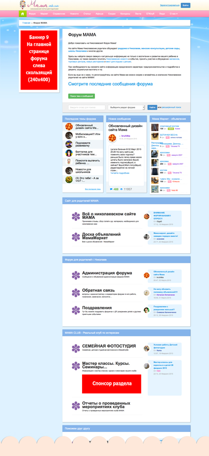 На главной странице форума сайта Мама доступны следующие форматы баннеров