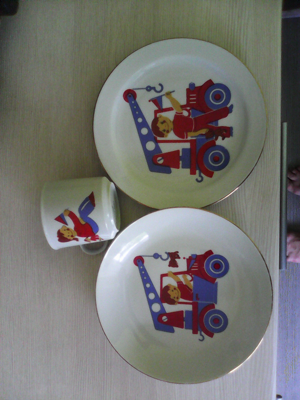Бабушка подарила Максу посуду с которой много лет назад кушал его папа:-)