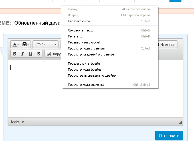 А откуда у вас вообще это мелькает? У меня нажатие правой кнопки вызывает вот такое, я думала, что в этой версии редактора стандартное контекстное меню не предусмотрено :) У меня хром/хрюP.S. Нажимайте Ctrl+V для вставки.