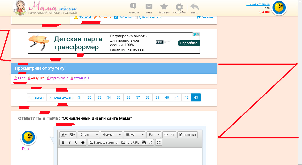 Как минимум в планах уменьшить пост (сообщение) по высоте. Сделать компактнее аватар, ник и картинки детей.