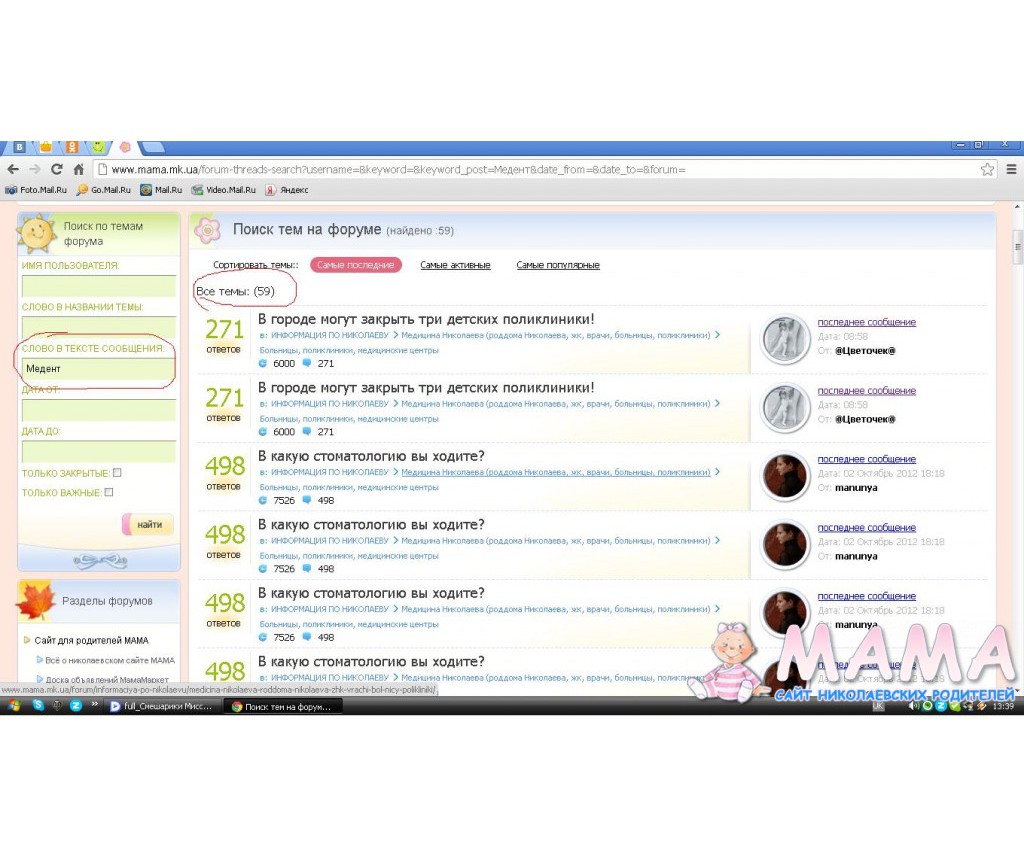15 October 2012 Доброй ночи. А функцию " поиск" до конца не восстановили ещё....или это теперь всегда так будет...ввела слова " манту", а мне повыдавало только название тем...а там , как искать...листать все надцать страниц...