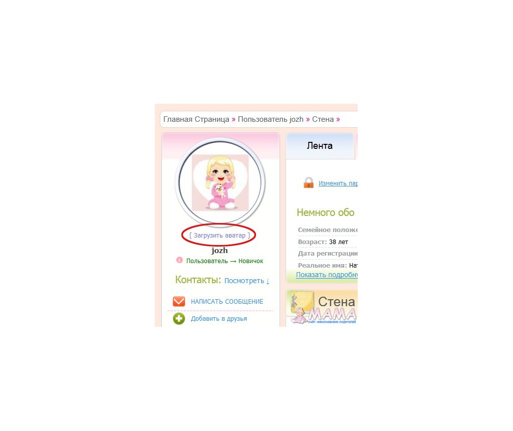 это где-то в районе-изменить личную инфо-загрузить аватар. по самой кнопке под фоткой не загружается