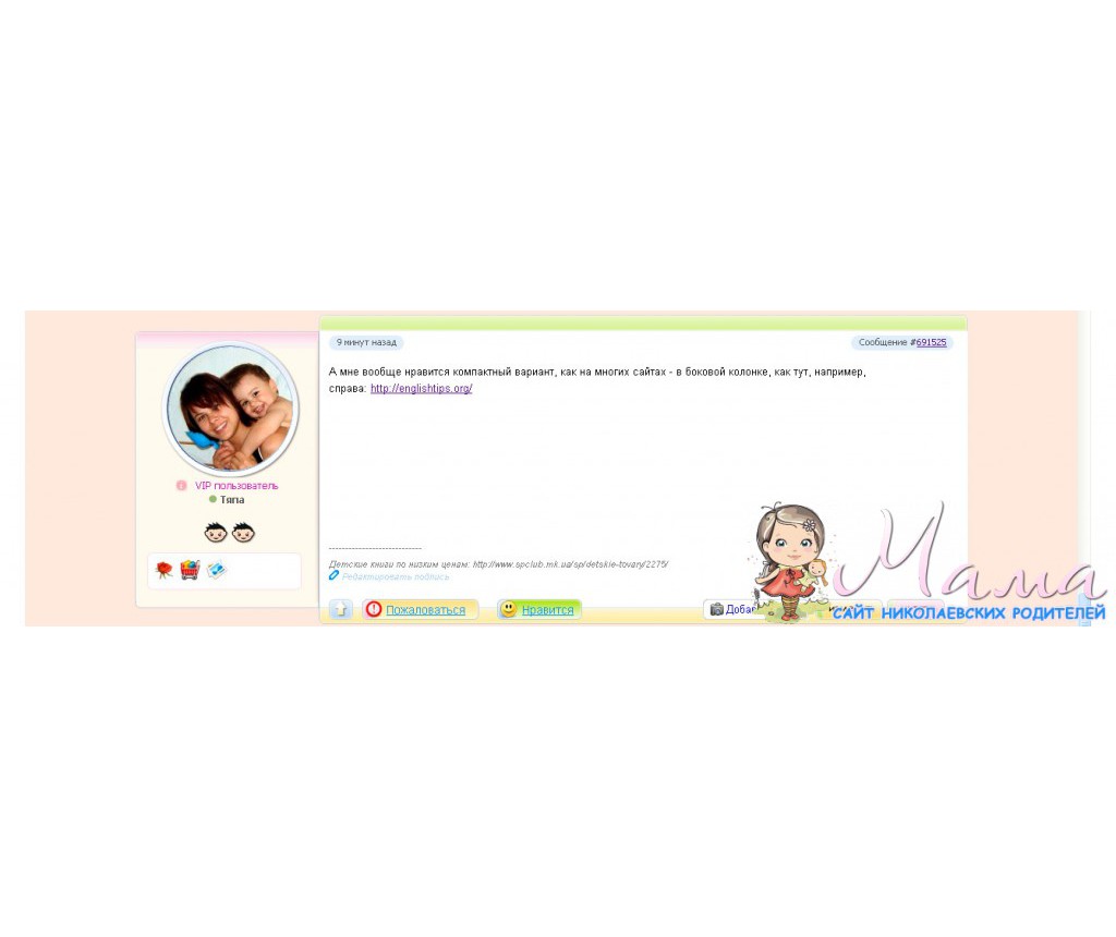Вообще я имела в виду дизайн в целом - вот, например, шапка + заголовок темы занимают полстраницы!!! Можно и зону аватара сделать компактнее, разместить статусы-награды по-другому