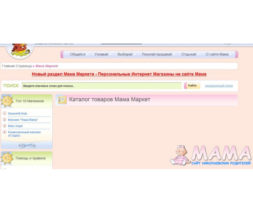 Вы заходите на МамаМаркет и что видите? можете сделать скрин?