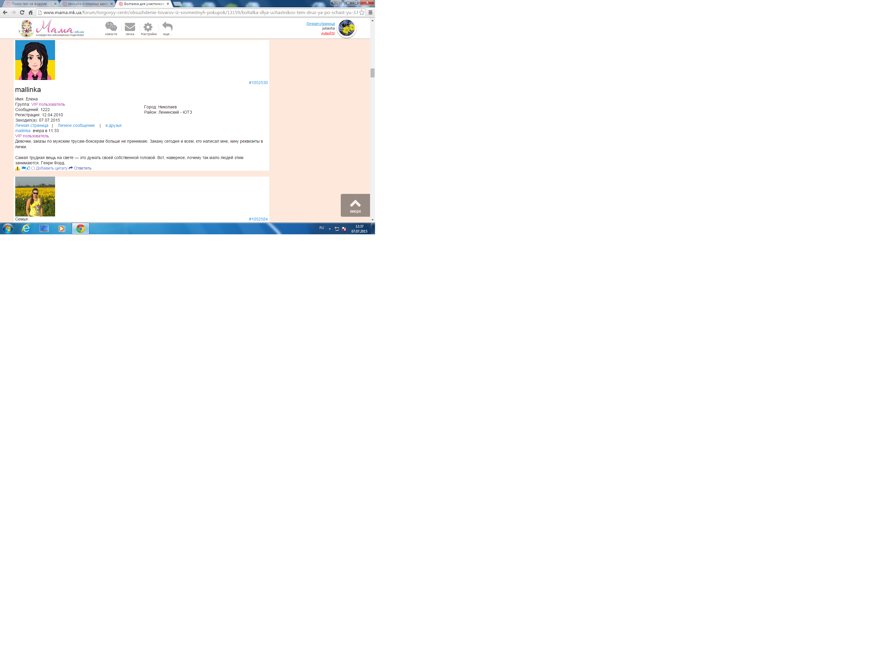 Имя: Юлия Группа: VIP пользователь Сообщений: 2311 Регистрация: 25.07.2010 Заходил(а): 05.12.2021 |
