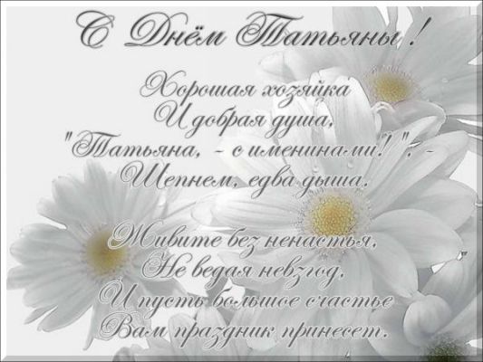 И с именинами тебя, Татьяна, поздравляя,