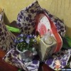 Вика (КеТьКа) очень милая девушка и немного застенчивая, так мне показалось))) Привезла подарок мне на работу - огромный цветочный бутон и открытка, сделанная своими руками из бисера. Цветок я довезла домой целым и невредимым, Вика предупредила ,что внутри цветка что-то бьющееся. Открыв подарок, я обнаружила керамическую подставку для мобилки в виде коровки (уже используется мной по назначению), подсвечник для ароматических свечей в египетском стиле и горшочек с живыми цеточками, кстати, как они называются? Горшочек в виде слоника, поставила на кухне. Сынуля успел попробовать на зуб один цветочек, остальное успела спасти)) Из цветка, в который был упакован подарок, муж придумал сделать абажур для ночника над дочкиной кроватью))))))