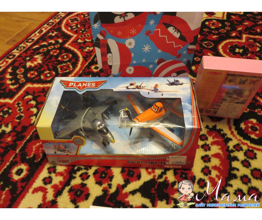 Наши самолеты, набор штампов и огромный набор восковых мелков( дочка его не выпускает с рук уже второй день, даже спала с ним)